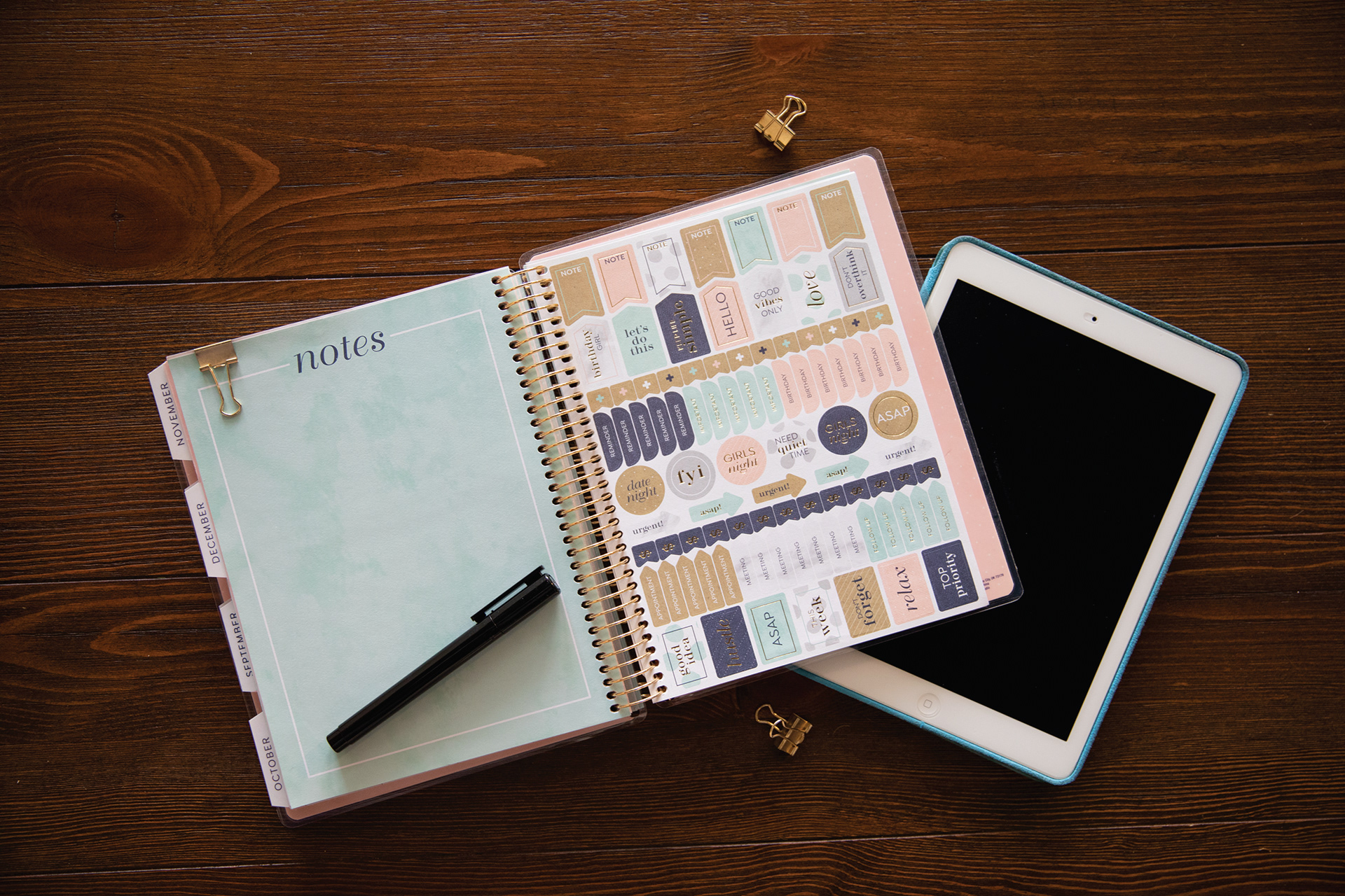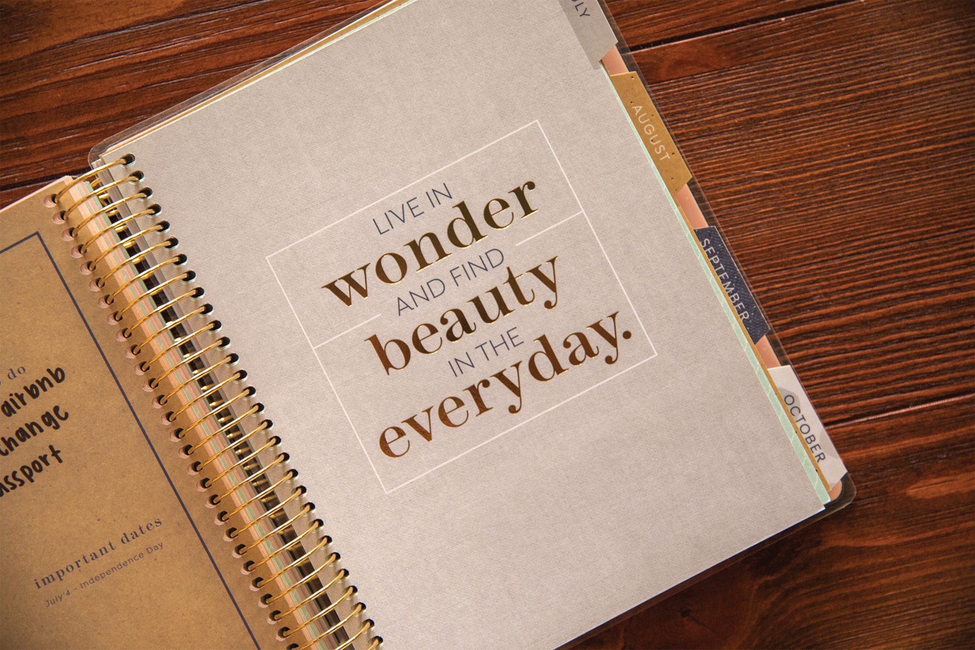 A planner for people who appreciate clean and modern design. Filled with touches of gold foil and stickers. Designs and all rights belong to Hobby Lobby.
